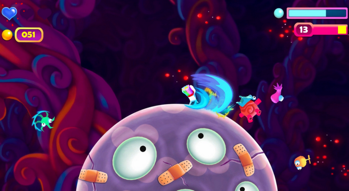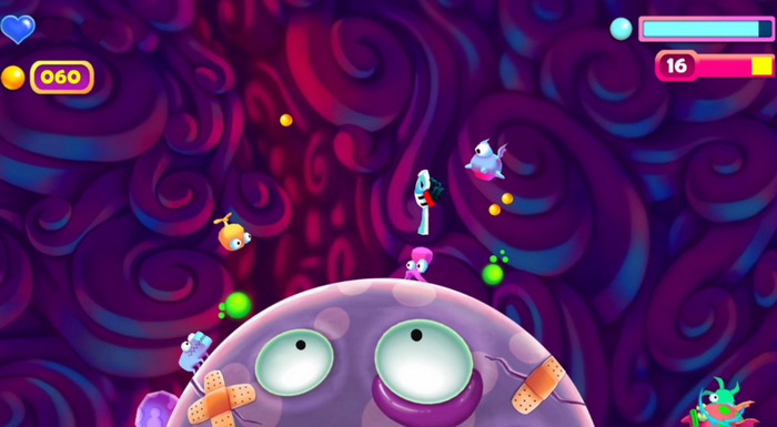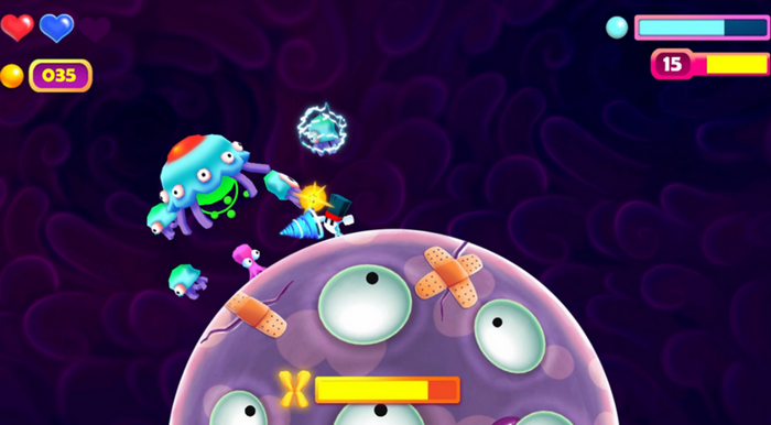 目標是摧毀你行走的大球體。但你不能如此輕易地傷害它!在對它的表面造成足夠的傷害后,你進入母體微生物,在那里你將不得不在終極攤牌中摧毀它的核心!