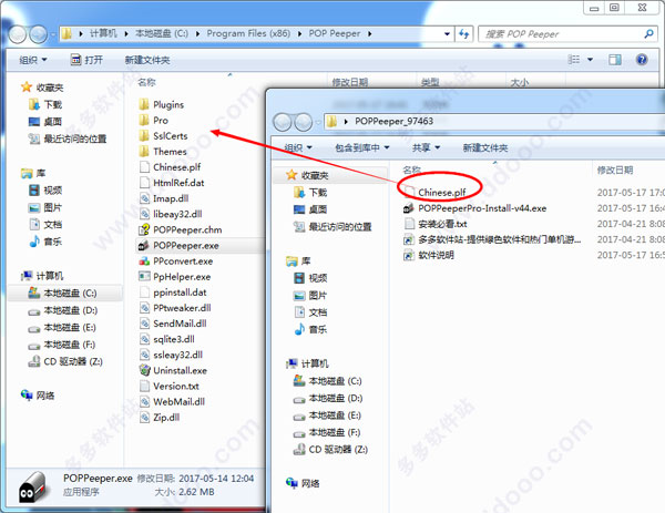 1、下載軟件壓縮包文件,點擊“POPPeeperPro-Install-v44.exe”根據(jù)提示完成原版安裝,POP Peeper默認為英文安裝界面,2、將壓縮包內(nèi)的Chinese.plf文件復制到POP Peeper安裝根目錄下,morning安裝目錄為:C:\Program Files (x86)\POP Peeper