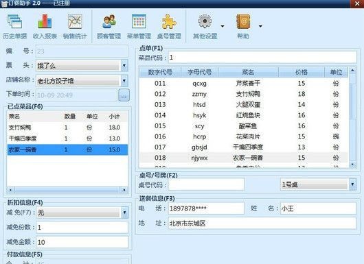 外賣送餐分流打印軟件允許自己編輯打印票頭如:餓了么 美團等等任意票頭??梢噪S意配置店鋪名稱。配置菜名和價格后,直接選擇菜名輸入數(shù)量后軟件自動計算價格。也可以輸入活動減免信息。軟件能自動保存客戶信息,輸入并打印一次客戶信息后,以后只要輸入客戶電話軟件就會自動調(diào)取之前打印過的客戶信息。免去每次都要重新輸入的煩惱。【軟件特點】