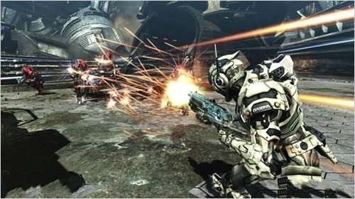 A.R.S全稱augmented reaction suit system, 實際上也就是主角這身特殊的戰(zhàn)斗服所具備的特殊功效——所謂的ar模式,這也正是本作的核心系統(tǒng)、本作的賣點、本作可以明顯區(qū)分于其他tps的最關(guān)鍵要素。這個系統(tǒng)在游戲中表現(xiàn)為,可以boost高速滑行移動,可以使出一擊必殺的近身格斗,可以在回避等等特殊動作后自發(fā)的開啟子彈時間、進入慢動作鏡頭,當(dāng)然咯這個系統(tǒng)實際看起來并不是那么的新鮮,以往很多的射擊類游戲中都有存在,(比如f.e.a.r極度恐慌中,玩家可以進入神速電子反應(yīng)狀態(tài),也就是所謂的子彈時間以及馬克思·佩恩等等等等)可是在三上的設(shè)定下,這個系統(tǒng)卻重新定義了所謂子彈時間在游戲中的感念。 大部分玩家相信,找掩體躲避,遮遮掩掩的打并趁機閃避開啟子彈時間才是本作戰(zhàn)斗的關(guān)鍵,其實不然,本作說真的和神秘海域、戰(zhàn)爭機械這樣的游戲真的是相差太多了——