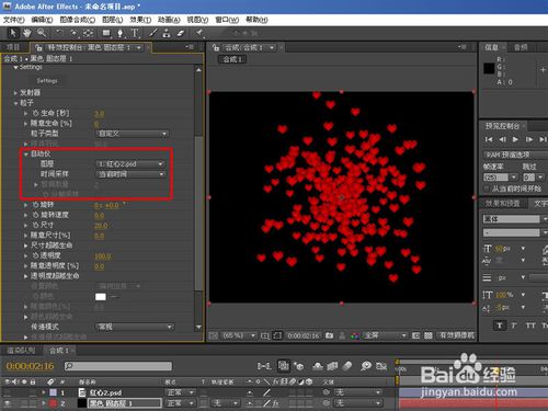 修改特效參數(shù),粒子發(fā)射類型改為圖層發(fā)色,就是layer,發(fā)射圖層,還有采樣方式的選擇見圖所示。另外粒子數(shù)改到20000左右。
