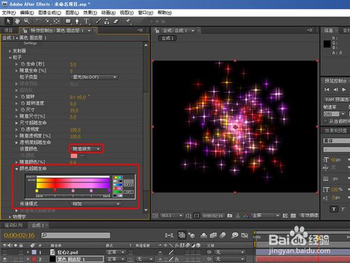 再來看看隨意漸變類型,跟上面生命類型差不多,只不過顏色設(shè)置為粒子顏色以漸變顏色演示,傳遞模式跟層的混合模式差不多,如下圖:
