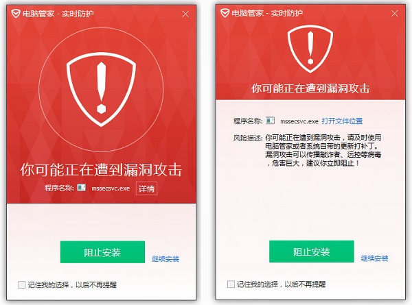 請按提示及時修復(fù)漏洞、并開啟主動防御系統(tǒng),避免中招!
