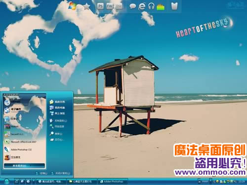 魔法桌面原創(chuàng)xp、vista、windows7通用版心舞藍(lán)天電腦桌面主題,主題用藍(lán)色亮麗的質(zhì)感表現(xiàn)海邊的浪漫生活,心型云朵更是這款主題的最大亮點。