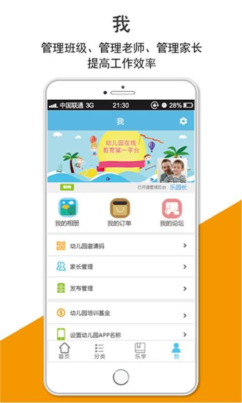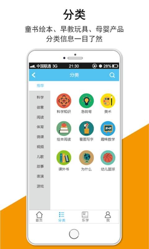 【首頁】:老師實(shí)時(shí)更新第二課堂、孩子作品、親子活動(dòng)、班級(jí)相冊(cè)等精彩內(nèi)容,讓家長(zhǎng)了解寶寶在園學(xué)習(xí)成長(zhǎng)動(dòng)態(tài);班級(jí)通知、老師推薦、作業(yè)發(fā)布、天天閱讀,讓家長(zhǎng)隨時(shí)了解幼兒園動(dòng)態(tài);兒歌、故事、表演、知識(shí)等海量在線學(xué)習(xí)資源,讓孩子、家長(zhǎng)樂學(xué)其中【分類】:童書繪本、早教玩具、文體雜志、母嬰產(chǎn)品等特賣商品分類信息一目了然,限時(shí)優(yōu)惠無下限,海量商品購(gòu)不停
