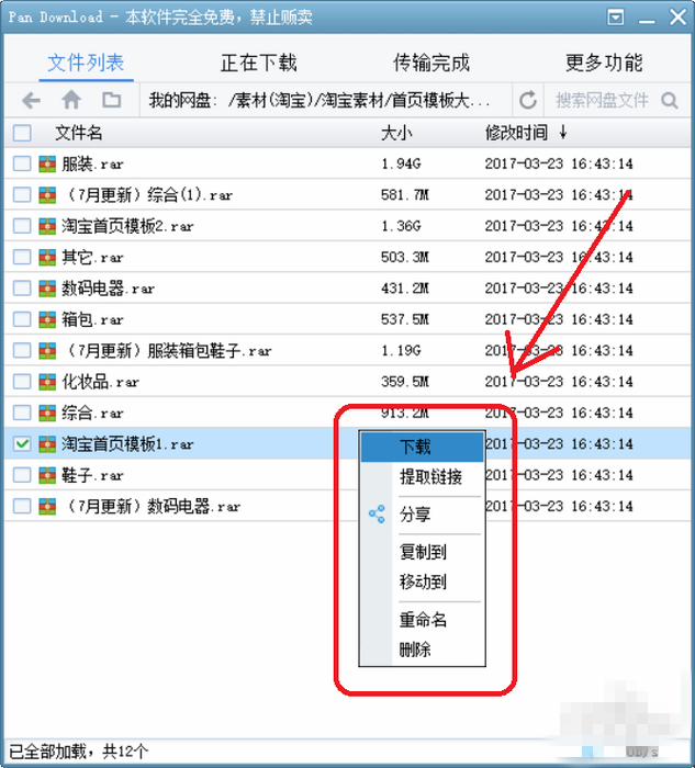 分享需要下載的文件 -> 打開分享鏈接 -> 下載 (文件數(shù)量盡量控制在10個(gè)以內(nèi),太多的話容易出驗(yàn)證碼)