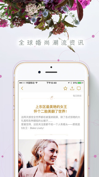 時尚新娘每天將生產(chǎn)大量全球婚尚鮮聞,明星愛情與婚禮圍觀、婚尚名家在線支招、炫酷婚禮主題、美不勝收的婚禮目的地、名人婚戀八卦動向……