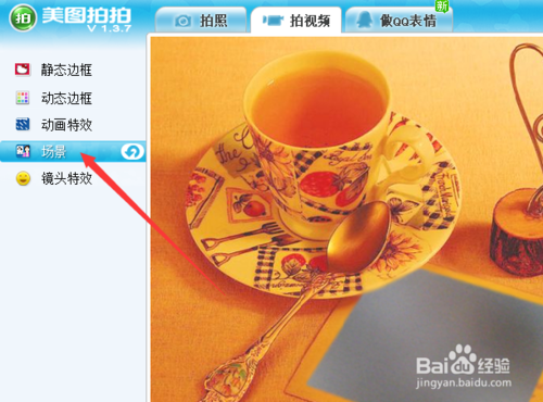 首先設(shè)置一下場(chǎng)景,和演戲一樣先布置一下舞臺(tái)背景。單擊場(chǎng)景按鈕,在右邊顯示各種場(chǎng)景樣式供你選擇,單擊其中一種就可以了。