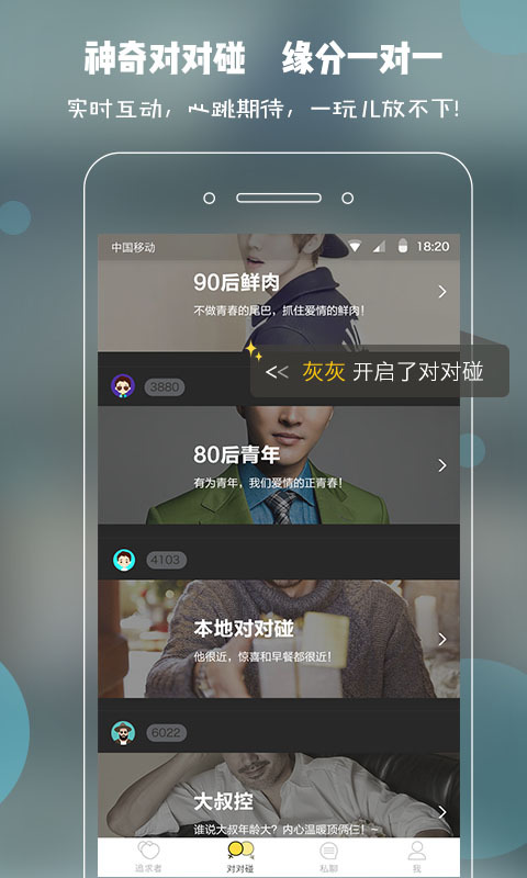 對(duì)對(duì)碰,神奇實(shí)時(shí)匹配,一對(duì)一互動(dòng),每一次心跳期待,一玩兒放不下!