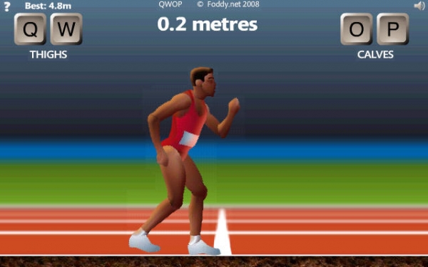 qwop百米賽跑是一款非常虐心的賽跑游戲,這款游戲曾十分火爆,超高的難度讓不少玩家有想砸機(jī)子的沖動(dòng)。游戲的玩法十分簡(jiǎn)單,就是讓你跑完100米。但是,幾乎沒(méi)有人可以跑完全程。。。玩本游戲要考慮物理因素,例如要想前進(jìn)的話,首先要保證重心向前傾,然后再交替運(yùn)用雙腿。另外由于物理因素的存在,操作雙腿不能僅僅尊從按鍵說(shuō)明字面上的意思,動(dòng)左腿的話,通常右腿也會(huì)受到牽引,這些都需要自己思考和嘗試。