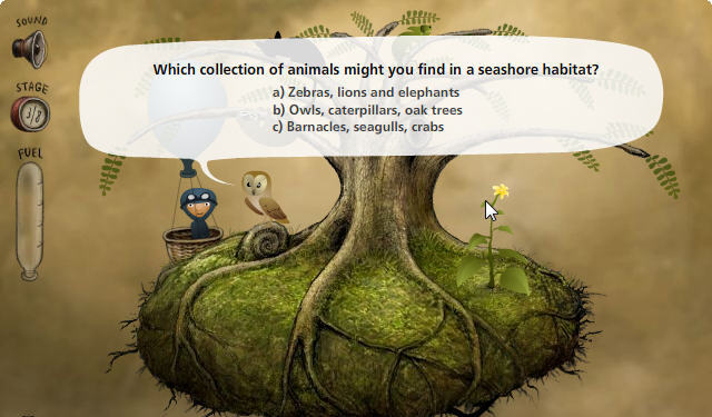 拖曳來(lái)完成物品的交互,比如將喇叭拉動(dòng)到環(huán)形圖案上會(huì)出現(xiàn)音符,或是按邏輯給畫片排序完成一個(gè)完整的故事。