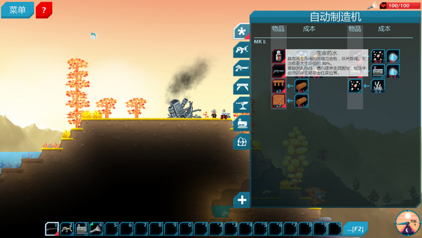 游戲中玩家扮演的是CRAFT公司的一名銷售人員,你駕駛一架飛船在星系中,四處推銷著你們的自動化裝配工具,然而不幸的是飛船意外撞向了一個充滿敵意的星球上,幸運的是你并沒有死,現(xiàn)在你的手上還有一些沒有賣出去的工具,你需要結合這個星球上可用的資源,建造或制作出能夠保證自己生存下來的所有東西,并嘗試逃離這個星球。【游戲特點】