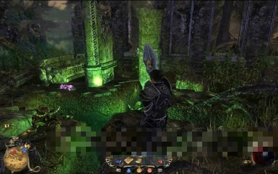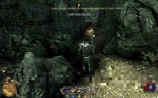 往地圖的西北方行進(jìn),在石壁上找到一道門,用歐利昂的石鑰匙打開它,穿行到另一邊。