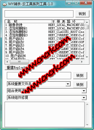 手工輔殺 1、快速修復病毒經(jīng)常修改的地方 2、快速修復系統(tǒng)各種故障 3、快速跳轉(zhuǎn)系統(tǒng)重要文件夾 4、幾個功能配合使用,效果更好