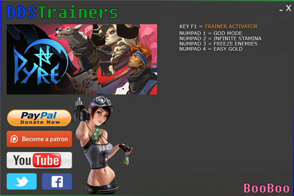 柴堆Pyre四項(xiàng)修改器 免費(fèi)版 柴堆修改器是專為《柴堆》游戲玩家們所提供的游戲修改器。它是由BooBoo制作分享的Pyre修改器,使用后可獲得上帝模式、無(wú)限耐力、凍結(jié)敵人等效果。有需的玩家自取。