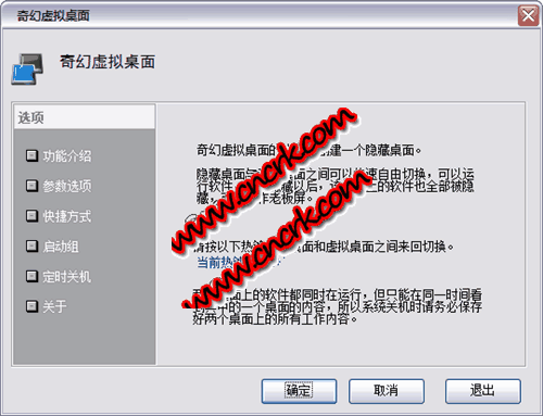 讓你擁有兩個不同的桌面:一個主桌面,一個隱藏桌面。你可以把不希望別人看到的窗口放置在隱藏桌面中,瞬間可以在兩個桌面之間切換,他人無法察覺隱藏桌面的存在。