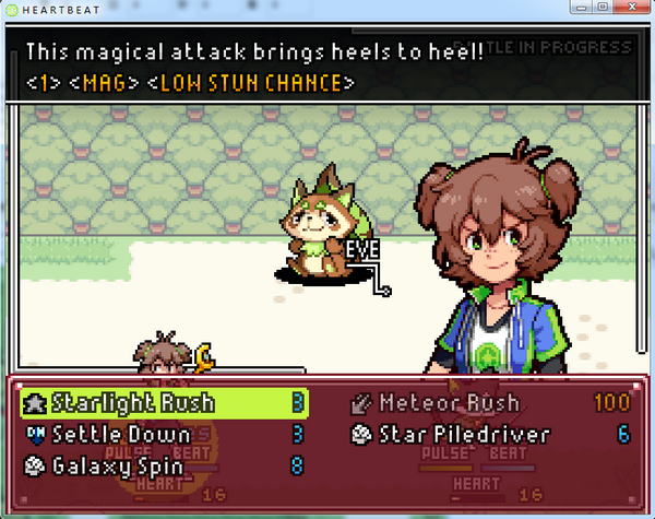 心跳Hearteat中文版是一款好玩有趣的rpg游戲。游戲中玩家將扮演主人公EVE,有一天神奇的事情發(fā)生了,你的書(shū)房居然鏈接到了魔法世界,還遇到了魔法世界居民KLEIN,你想要去看看另一個(gè)世界有什么不同,于是你辭別了爺爺,踏上了奇幻的魔法世界大冒險(xiǎn)。