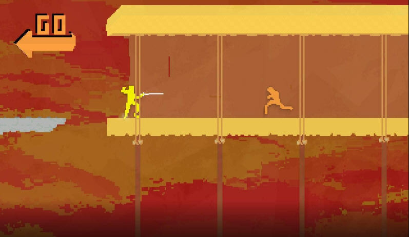 游戲中你和你的對(duì)手在數(shù)米的距離上分立兩邊,你們不斷的調(diào)整著手中的刺劍,想要找到對(duì)方的弱點(diǎn)。你們之間的距離太遠(yuǎn),不足以讓你發(fā)動(dòng)突襲;你們之間的距離又太近,如果你飛躍過去,很有可能會(huì)被對(duì)手刺個(gè)對(duì)穿。你向前移動(dòng)了幾步,又再次退后,雙方就這樣對(duì)峙著。忽然,你對(duì)手的劍動(dòng)了,你后發(fā)制人,擊飛了他手中的劍、刺中了他的身體,繼續(xù)向前?!赌岬禄舾瘢∟idhogg)》的戰(zhàn)斗就是這樣在以微秒計(jì)的時(shí)間單位內(nèi)分出勝負(fù),所有的戰(zhàn)術(shù)和本能都結(jié)晶成了一往無前的決定一擊,無論最后結(jié)果是你還是你的對(duì)手變成一團(tuán)像素血霧。在單人游戲方面《尼德霍格》是一部緊張、充滿活力、非常優(yōu)秀的擊劍游戲,完全值得你花上好多個(gè)小時(shí)進(jìn)行賞玩。而多人游戲則真正體現(xiàn)了這部作品的精華所在。【操作說明】