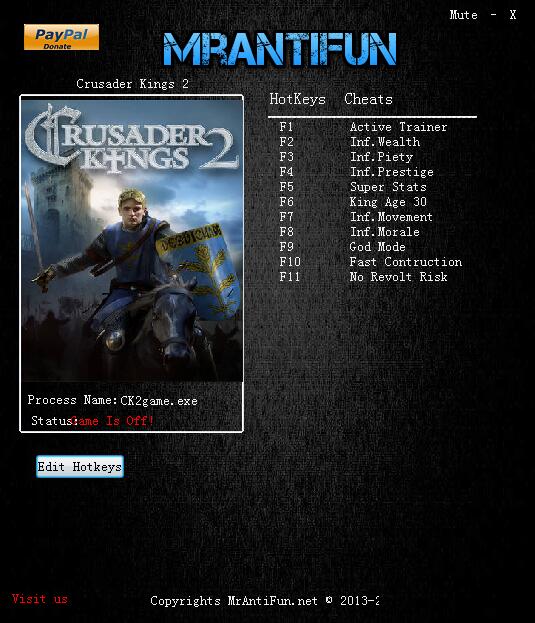 十字軍之王2十項修改器,具備無限財富,無限虔誠,無限聲望,快速施工,上帝模式,士氣全滿等十項修改器功能,使用方便需要的玩家朋友們可自行下載。【軟件特點】
