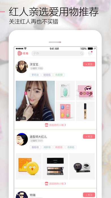 映客視頻達(dá)人孫一萌、微博紅人瑞希希大爺、美拍達(dá)人造型師大紅兒,國內(nèi)一線彩妝導(dǎo)師美麗俏佳人kevin老師...你要的美妝紅人,都在花卷等你關(guān)注!一線明星御用化妝師傾情推薦!