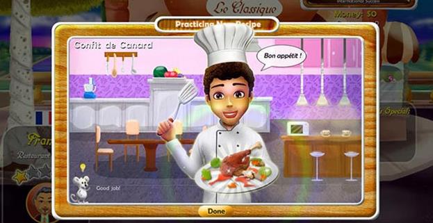 路易在巴黎經(jīng)營著一家餐廳Le Classique,但生意一直都不好。在一次機緣巧合下一只不平凡的老鼠幫他找到了家族的秘密食譜。路易決定重新振興起這家餐廳。游戲中共有74個關(guān)卡可以挑戰(zhàn),有多達20種不同的食譜,玩家還可以在5個國家里開設(shè)自己的餐廳。【游戲特色】