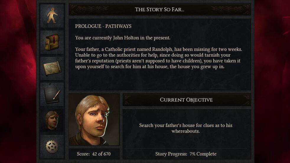 “父親蘭多夫霍爾頓去世了。當(dāng)然,不是真的。但在他心里,他知道自己不能活在……不是他學(xué)過(guò)的所有東西。他坐在昏暗的橡木桌前,在昏暗、舒適的書(shū)房的角落里,這位白發(fā)蒼蒼的天主教牧師,甚至是虛弱的人,把一根舊羽毛放進(jìn)一個(gè)黑色墨水的容器里,開(kāi)始寫(xiě)……Randolph的父親,一位名叫Randolph的天主教神父,已經(jīng)失蹤了兩周。由于不能去警察局尋求幫助,因?yàn)檫@樣做會(huì)玷污他父親作為一名獨(dú)身牧師的名聲,所以約翰獨(dú)自去尋找他的父親。