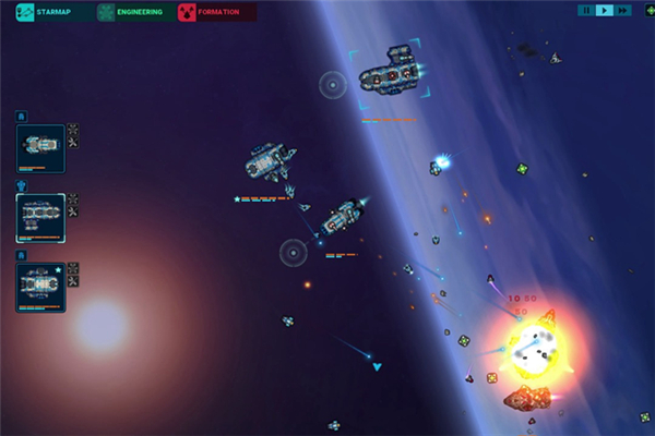 你是一名年輕的指揮官,接到任務(wù)去敵方領(lǐng)域探險(xiǎn),遠(yuǎn)離家園去到未知的星系,當(dāng)你從超空間跳出的那一刻,你永遠(yuǎn)不知道你將會(huì)面臨什么。【游戲特色】