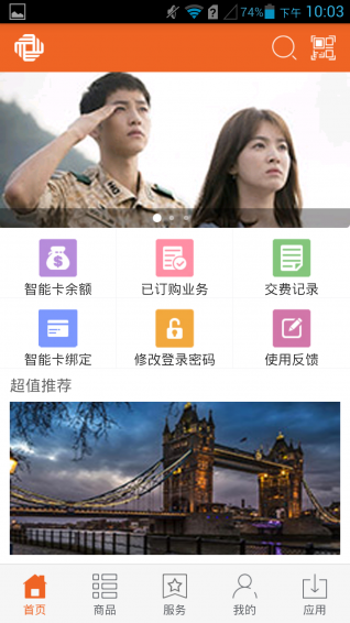 1.首頁(yè):提供最新產(chǎn)品,超值產(chǎn)品推薦。快速給客戶提供最新的資訊。2.服務(wù):提供查詢已訂購(gòu)業(yè)務(wù),查詢交費(fèi)記錄以及余額,可智能充值。
