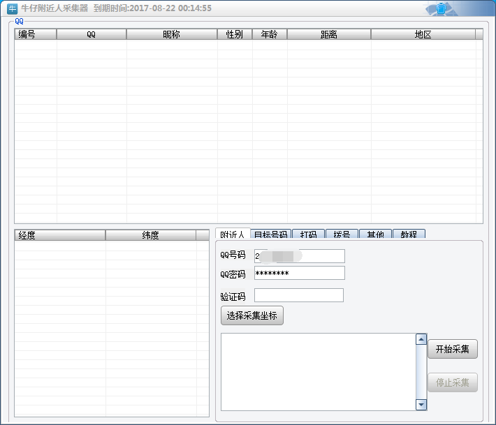 QQ附近人采集器是通過百度地圖選擇地區(qū)坐標,采集左邊附近人,設(shè)置多個左邊即可采集完該地區(qū)所有在線的附近人QQ,適合針對地區(qū)的精準營銷,而且都是活人,不用二次篩選,拿來即可用。【功能介紹】
