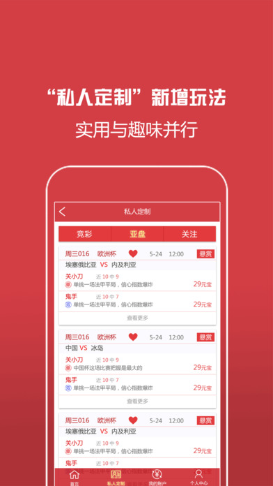 小刀匯的足球資訊、傷停等信息,將無償向用戶開放。以人為本、個(gè)性服務(wù),是小刀匯永遠(yuǎn)的宗旨