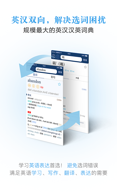 原版內容,正版發(fā)行。全球首部由中英兩國出版社合作編寫的詞典,共詞145,000余條,覆蓋面廣,查得率高,突出搭配,輔以實用專欄,確保用戶理解或表達時準確選詞,是英語學習、寫作、翻譯者的不二選擇。《牛津·外研社英漢漢英詞典》2010年7月出版,手機版在保留原版內容的基礎上做了大量更新優(yōu)化。 牛津是歷史悠久、中國銷量第一的英語詞典品牌,是全球英語語言標準的引領者,被譽為詞典界的“圣經”,據不完全統(tǒng)計,中國超過80%的英語學習者使用牛津詞典。選擇牛津詞典,品味原汁原味的正統(tǒng)英語,與大師一起發(fā)現英文之美。 規(guī)模首屈一指:收詞145,000余條,例證近150,000條; 語言鮮活地道:依托牛津英語語料庫和LIVAC共時語料庫; 兼顧雙重需求:同時滿足中國人學英語和外國人學漢語的不同需求; 確保精準選詞:首創(chuàng)義項指示語,精準選詞; 突出詞語搭配:提供近70,000搭配詞; 精選語用主題:分類例解相關表達; 解說中外文化:深入講解中國及英美文化。 海笛科技獲牛津大學出版社官方授權正版發(fā)布,軟件具有便捷的查詢功能,還有清晰發(fā)音、生詞收藏和復習背誦等輔助學習功能。選擇正版詞典,學習更有保障!