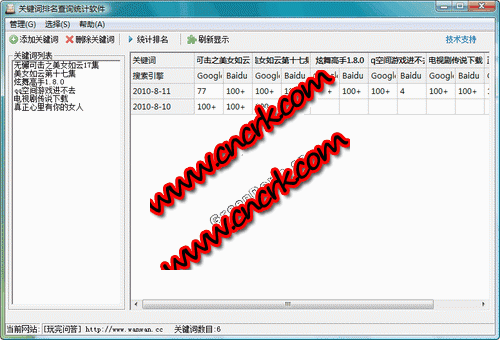 關(guān)鍵詞排名查詢工具 V1.0 簡體中文綠色免費版 通過關(guān)鍵詞排名查詢工具您可以查詢您的網(wǎng)站的關(guān)鍵詞在百度/谷歌的排名。每天統(tǒng)計可以跟蹤網(wǎng)站關(guān)鍵詞排名的變化。為您的網(wǎng)站的SEO提供參考。
