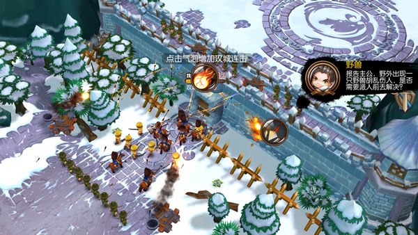 在場景中,你的部隊能夠完成訓練和培養(yǎng),你的下屬武將還可以在營地中自動巡邏,進入各種建筑,聊天閑談,并在野外自動擊殺山賊、流寇、野獸等NPC獲得資源獎勵,隨著時間推移還會觸發(fā)各種動態(tài)事件,逐步消滅敵方的部隊,最后完成攻城戰(zhàn),進入下一場景中。
