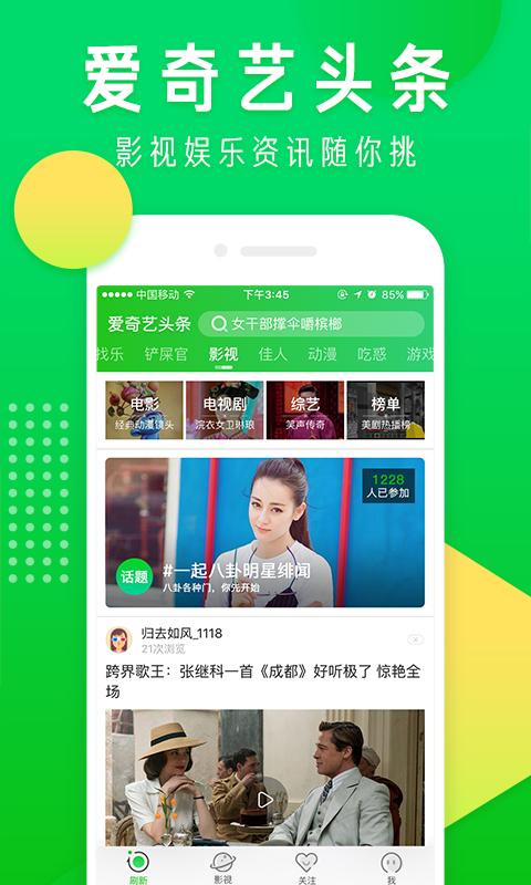 熱點(diǎn)、八卦、娛樂,海量資訊隨你挑;明星、熱播、視頻,就在愛奇藝頭條。