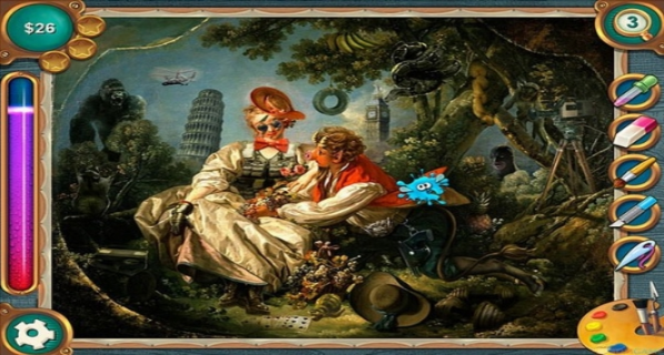 1、游戲不是簡單的拼圖而是要修復(fù)被破壞的名畫。2、使用各種工具來修復(fù)藝術(shù)作品。