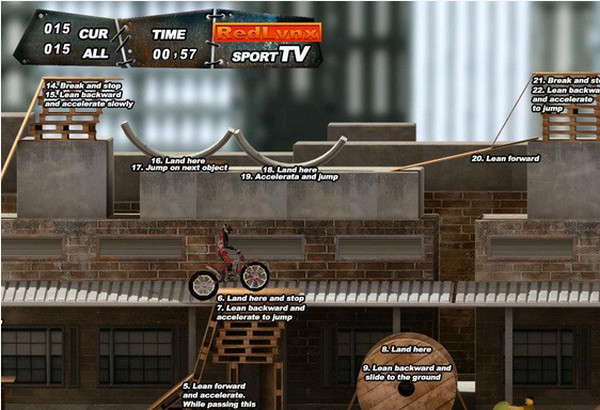 托車場地障礙賽-Trials Construction Yard是一款模擬摩托障礙賽的競技游戲。你要駕駛摩托車通過擺放復雜的建筑物,來挑戰(zhàn)各種難關(guān),游戲需要靈敏的反應(yīng)和良好的平衡性,需要高超的操作才能獲得成功。游戲需要J2SE(TM) Runtime Environment的支持,系統(tǒng)中沒有安裝的用戶,系統(tǒng)在安裝完游戲后將進行此項安裝。【游戲特色】