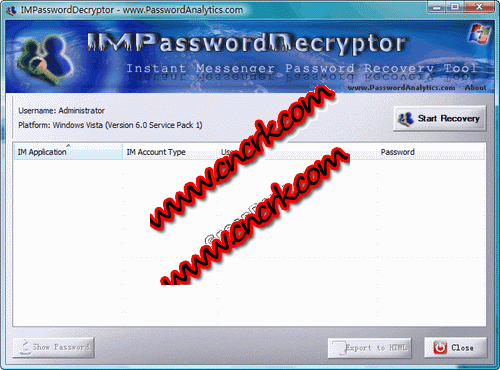 IMPasswordDecryptor V1.0 英文綠色免費(fèi)版 可以恢復(fù)目前國(guó)內(nèi)外主流的聊天工具密碼,支持列表如下: