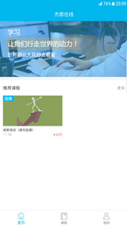 杰恩在線輔導(dǎo),中小學(xué)在線輔導(dǎo)學(xué)習(xí),電腦、平板、手機隨時隨地。名師授課,深入淺出,生動形象,在線學(xué)習(xí)更有效;助教老師全程陪伴督導(dǎo),批改作業(yè)、及時反饋、及時答疑,認(rèn)真負(fù)責(zé),成績提分明顯;在家學(xué)習(xí)省時便捷,天氣、交通、不再煩心,家長更可全程陪同,進步看得見。