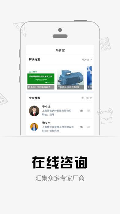 易算云推出的工程行業(yè)領(lǐng)域互聯(lián)網(wǎng)+的移動辦公工具,全力圍繞各行業(yè)工程師而打造的專業(yè)性app,包含工程計算、設(shè)備選型、設(shè)備參數(shù)檢索、書籍查閱、設(shè)備廠商服務(wù)、設(shè)計院信息、煙氣脫硫、脫硝行業(yè)專題等功能和板塊。