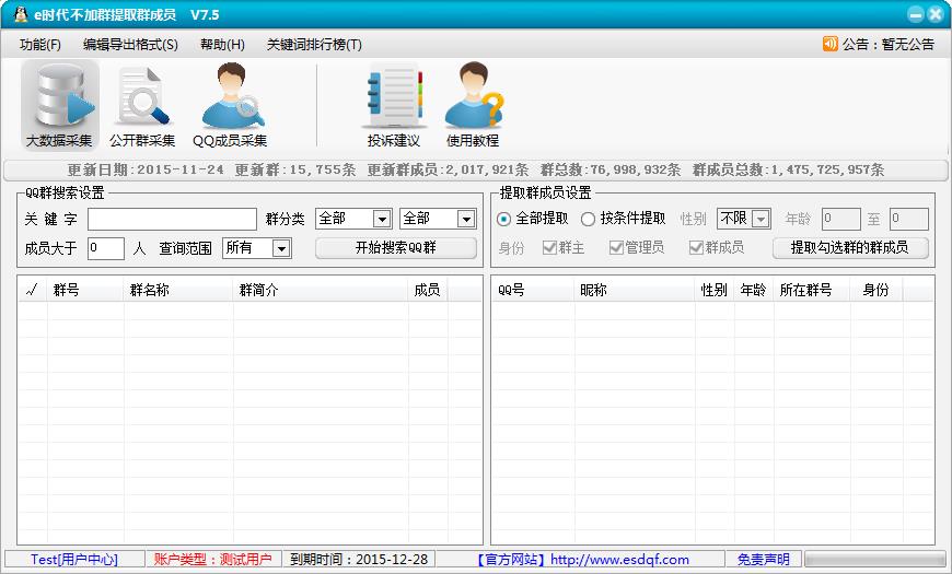 無需加群、無需登錄QQ號,即可實現(xiàn)高速、穩(wěn)定的提取QQ群的群成員數(shù)據(jù),數(shù)據(jù)精準、定向,該軟件是您做QQ網(wǎng)絡營銷的必備工具!多條件查詢?nèi)撼蓡T: