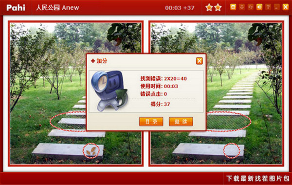 1、每天都會添加新圖片,您可以通過‘下載更新//’或登陸網(wǎng)站進行下載。2、每幅圖僅有一次加分機會,加分=找到錯誤數(shù)×20-錯誤點擊數(shù)-用時,無負分。開始游戲后退出或返回目錄都將失去加分機會。