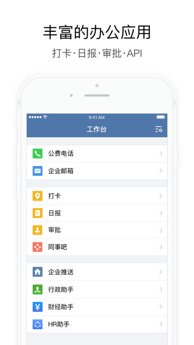 【輕量OA應(yīng)用】預(yù)設(shè)官方出品的打卡、審批、日?qǐng)?bào)、公告、同事吧等輕量OA應(yīng)用