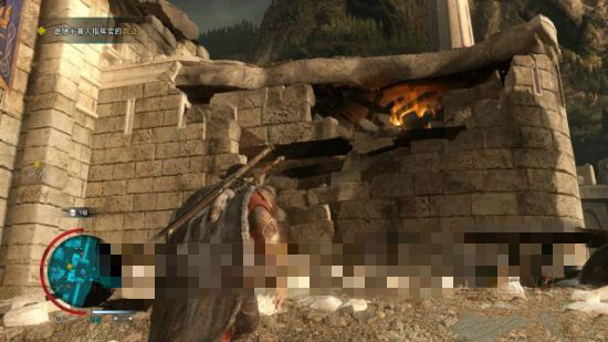 靠近半獸人指揮官所在的露臺(tái)的東南面,這里有一個(gè)棚架可以爬到該露臺(tái)下方的護(hù)欄外圍。
