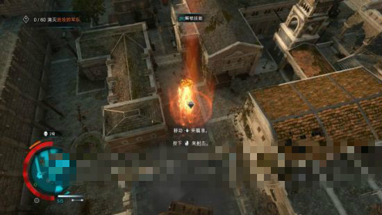 這里要注意一下西南面的攻城獸,它處于兩座樓宇上,如果瞄準(zhǔn)有偏差,只會(huì)擊中它周邊的房頂,所以要瞄準(zhǔn)一點(diǎn)發(fā)射火球。