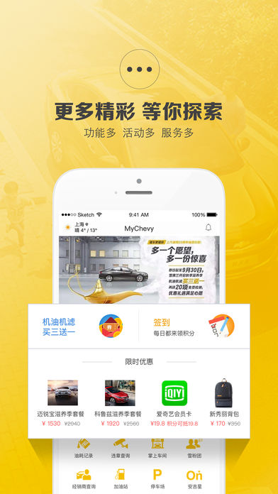 MyChevy app智能導(dǎo)航系統(tǒng),為廣大車主們第一時(shí)間找到周圍的加油站和停車廠,MyChevy app不再擔(dān)心出門找不到停車場咯!MyChevy app專屬零部件官方直營店。MyChevy app零部件更換的時(shí)候直接通過MyChevy app購買,MyChevy app官方零部件直營價(jià)最便宜。【功能介紹】