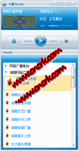 卡脆Radio全新發(fā)布,一款大小僅為1.33MB的純綠色網(wǎng)絡(luò)收音機(jī)軟件.提供全國各地電臺在線收聽,無需任何費(fèi)用,任何插件.就可以享受用電腦傾聽電臺的完美體驗(yàn).