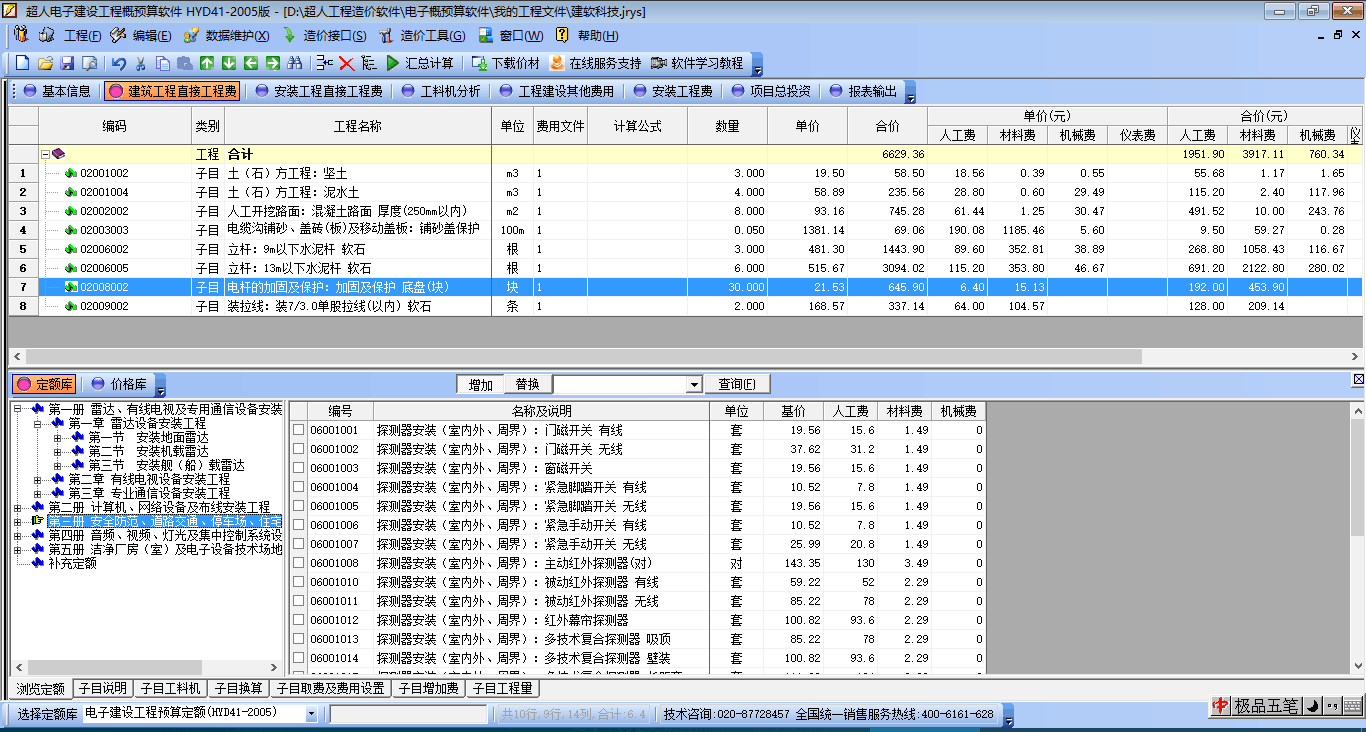 《電子建設工程概預算軟件 》根據(jù)中華人民共和國信息產業(yè)部電子工程標準定額站2005年新制定的《電子建設工程概(預)算編制辦法及計價依據(jù)》和《電子建設工程預算定額(HYD41-2005)》??捎糜陔娮咏ㄔO工程編制預算、工程結算和建設工程造價審計等。