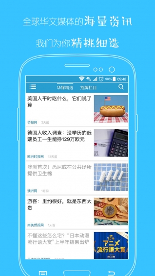 華輿有全球上百家華文媒體的資源庫(kù),編輯每天為你從海量信息中精心挑選優(yōu)質(zhì)內(nèi)容。你還可以用過(guò)"精選城市"查看11個(gè)海外城市的全新資訊,是不是很酷!