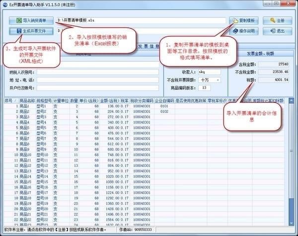 Ez開票清單導(dǎo)入助手根據(jù)開票銷貨清單的Excel表格,生成xml開票文件并導(dǎo)入到開票軟件開出發(fā)票,軟件支持含稅價和不含稅價兩種模式,有需要的趕快下載吧!【軟件特點】