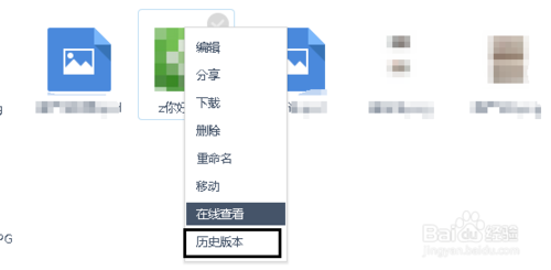 另一個(gè)方法就是如果我們沒(méi)有安裝客戶端的話可以使用網(wǎng)頁(yè)版進(jìn)行文件恢復(fù)。我們選定這個(gè)文件,右鍵,可以看到有一個(gè)歷史版本選項(xiàng),也是恢復(fù)想要的歷史版本就可以了